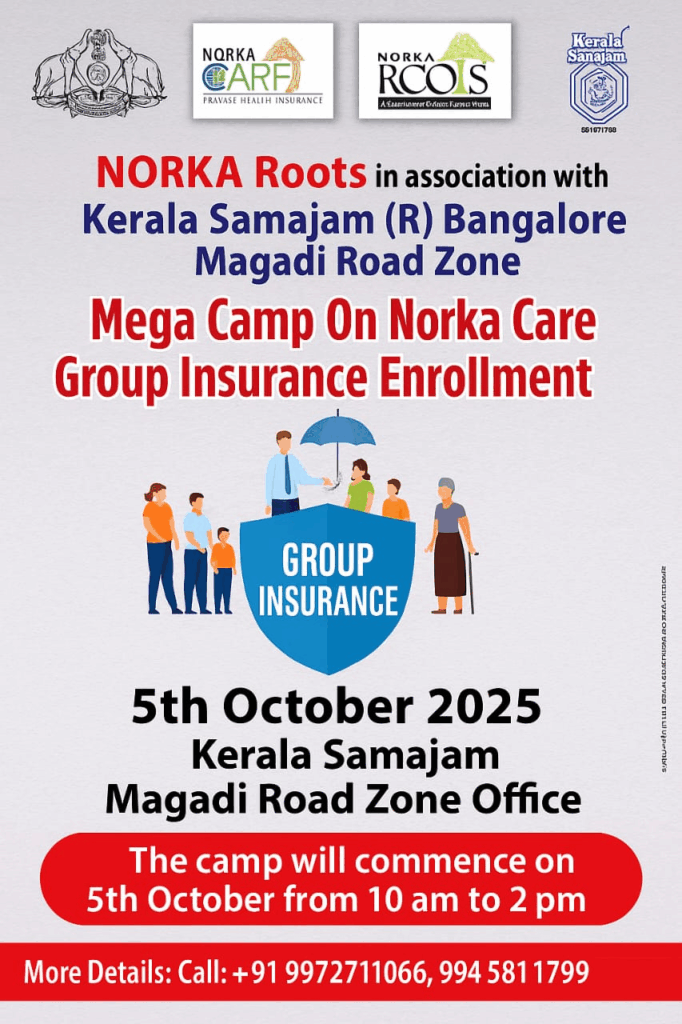 കേരള സമാജം ബാംഗ്ലൂർ, മാഗഡി റോഡ് സോണിൻ്റെ നേതൃത്വത്തിൽ നോർക്ക ഐഡി കാർഡ് എൻറോൾമെന്റിനായുള്ള മെഗാ ക്യാമ്പ് സംഘടിപ്പിക്കുന്നു. നാളെ രാവിലെ സോൺ ഓഫീസിൽ വച്ച് നടക്കുന്ന ക്യാമ്പ് 10 മണിക്ക് ആരംഭിക്കും.