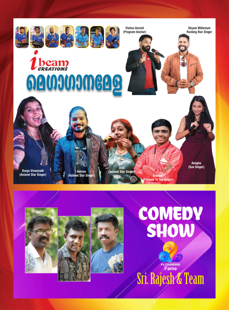 ഫ്ലവേഴ്സ് ഫെയീം രാജേഷ് നയിക്കുന്ന കോമഡി ഷോ, ദുർഗാ വിശ്വനാഥ്, ബൽറാം, ദിശ പ്രകാശ്, ശ്രീഹരി, അനഘ എന്നിവർ നയിക്കുന്ന ഗാനമേള, വൈഷ്ണവി നാട്യശാല അവതരിപ്പിക്കുന്ന നൃത്ത നാടകം എന്നിവ സിൽവർ ജൂബിലി ആഘോഷത്തിന് മാറ്റുകൂട്ടും. കരയോഗം കുടുംബാംഗങ്ങളുടെ വിവിധ കലാപരിപാടികളും അരങ്ങേറും. ഉന്നത വിദ്യാഭ്യാസം കരസ്ഥമാക്കിയ കുടുംബാംഗങ്ങളുടെ മക്കൾക്ക് ക്യാഷ് അവാർഡ് വിതരണവും ഉണ്ടാകും. 43 കരയോഗങ്ങൾ പങ്കെടുക്കുന്ന മെഗാ പൂക്കള മത്സരം ഈ സിൽവർ ജൂബിലിയോട് അനുബന്ധിച്ച് നടക്കും. ഓണസദ്യയും ഉണ്ടായിരിക്കും. കൂടുതൽ വിവരങ്ങൾക്ക് ബന്ധപ്പെടുക, അനിൽ (പ്രസിഡണ്ട്) 9886311810, സിഎൻ വേണുഗോപാൽ (സെക്രട്ടറി) 8590608751.